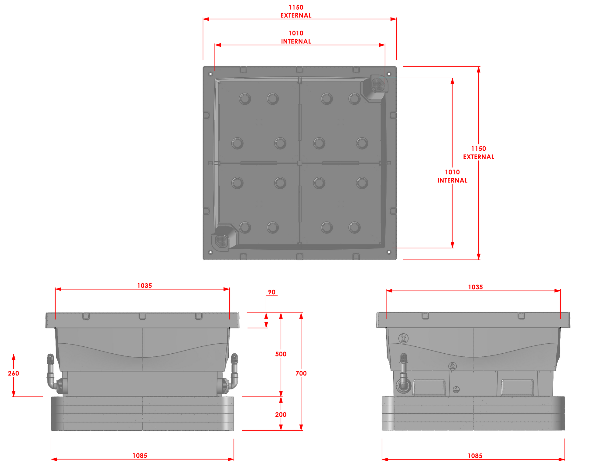 1150L x 1150W x 500H x 28kg