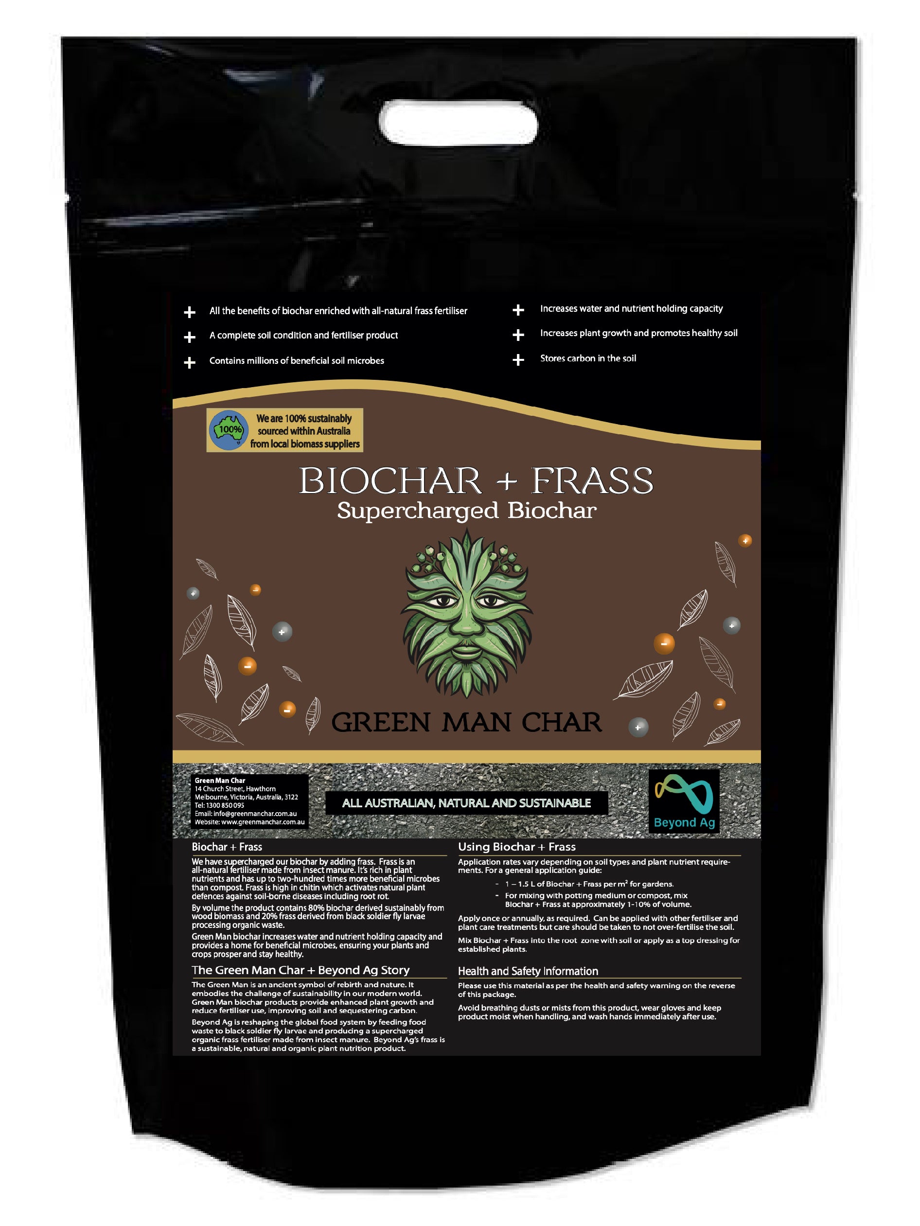 This premium blend combines the moisture-retaining power of biochar with the nutrient-loaded benefits of insect frass fertiliser – a natural product made from insect manure and produced locally by Beyond Ag in Australia.